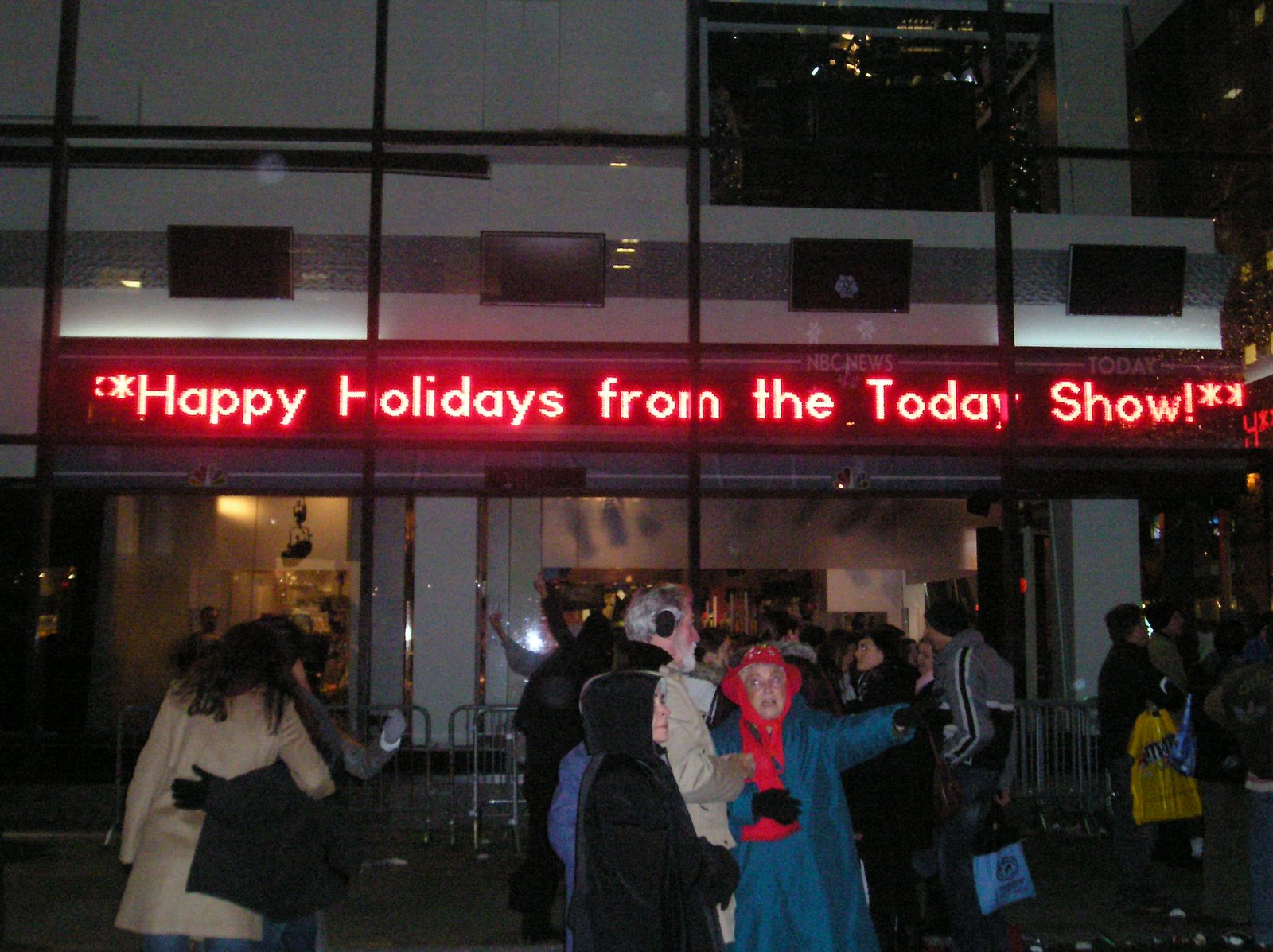 New York City has tons of great moments that can be seen on TV throughout not only the U.S. but the world. One of those events is the tree lighting at Rockefeller Center. It has been something that I've wanted to do ever since I moved here but the timing was always off until this year. Giancarlo has a long standing tradtion with his friends that every year, they go and eat at Olive Garden in Times Square (tourist haven) and then go see the tree at Rockefeller Center. Well this year we decided to go just the two of us. So, we ate at Olive Garden (which I haven't done since I was 11) and then wandered over to see the tree. Even at 11 o'clock at night, the crowds were still there and there was a lot of excitement buzzing around. We plan on making another trip sometime this weekend to get some more photos, but enjoy the ones below in the meantime!
